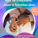 VHS-Kurs für Erwachsene: Lesen & Schreiben üben offen für alle ab Mittwoch, 04. März 2025 12x mittwochs von 09.30 – 11.45 Uhr im StadtRaum Preungesheim Homburger Landstraße 148 60435 Frankfurt am Main – Preungesheim Bitte anmelden: VHS-Kurs mit Anmeldung unter: 0176/ 100 77 967 12 Termine für insgesamt 60,00 EUR Quartiersmanagement Preungesheim Volkshochschule Frankfurt am Main