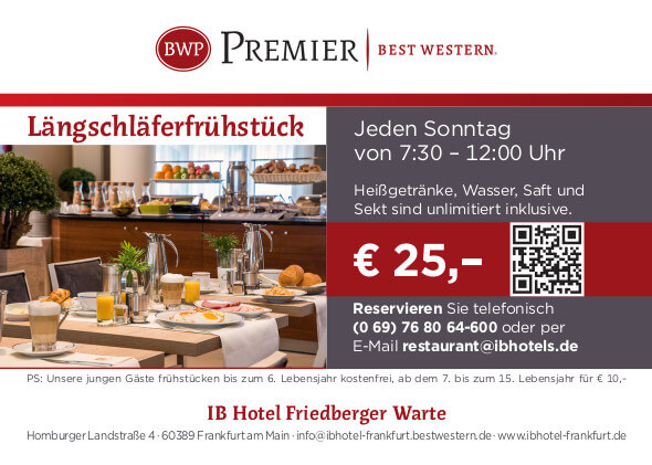 Herzliche Einladung zum Langschläferfrühstück im IB Hotel Friedberger Warte