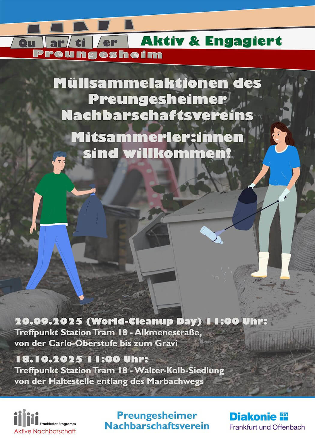 Kommt und macht alle mit bei der Müllsammelaktion des Preungesheimer Nachbarschaftsverein e.V.:
