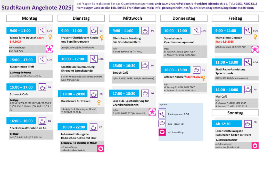 Die Angebote und Öffnungszeiten des StadtRaum Preungesheim